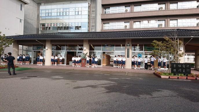 1年生の学年集会で、「職員室への出入時のマナー」について学びました。例年、全校集会で行っているのですが、コロナの影響により集会ができなかったため、本日、3年生体育祭応援リーダーの実演によるマナー指導をおこないました。