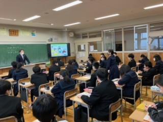 3月2日(木)1時間目 1年6組 家庭科の時間に『ほくぎん出前授業』として、講師の北陸銀行の方から、お金の使い方に関する授業がありました。生徒たちは、①お金を貯める目的②お金を預ける目的について学ぶことができました。
