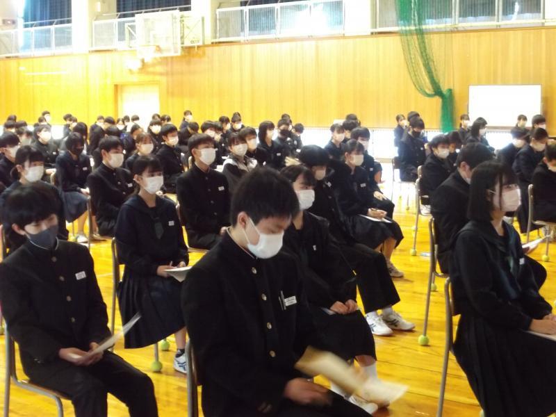 高校での学習の様子や行事についてなど、高校のHPでは分からないことをいろいろ話してくださいました。また、中学生のときにやってお