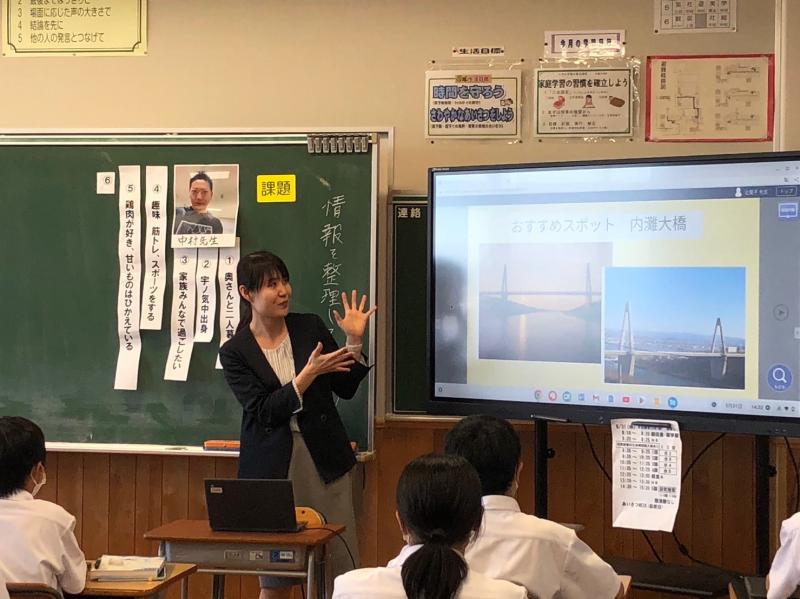 今日は、河北郡市内の先生方が来校して、1年5組で数学、1年6組で国語の研究授業が行われました。