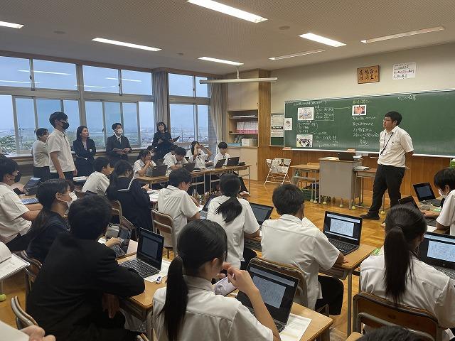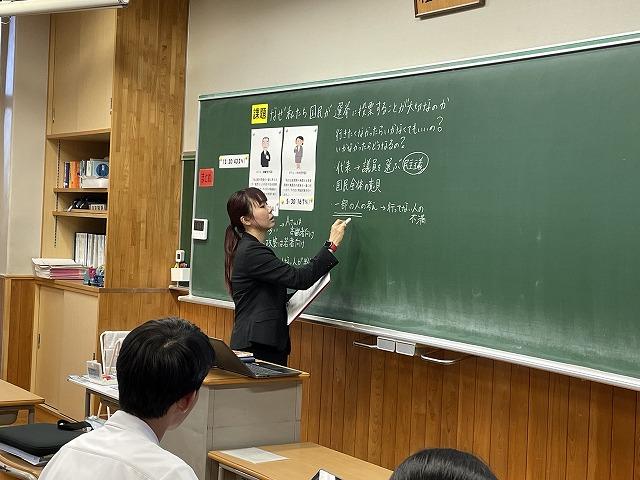 10/17(火)は県内各地から、多くの社会科の先生方に来ていただき、研究授業を行いました。この日は特別に、金沢市選挙サポーターE7(金沢大学法学部公認サークル)に所属する大学生の皆さんにゲストティーチャーとして授業に参加して参加していただきました。