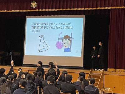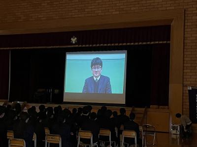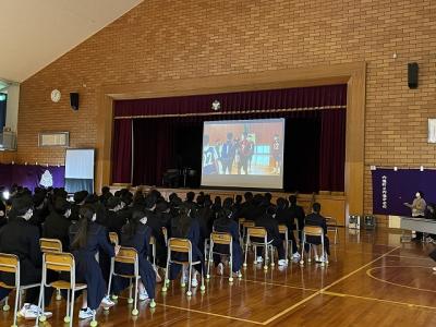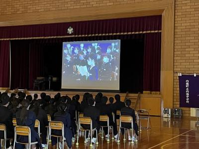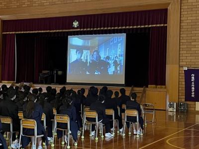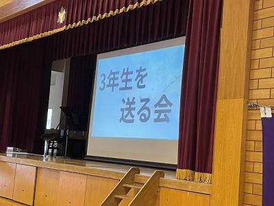3/8(金)の4限目に「3年生を送る会」を行いました。1・2年生の代議員を中心に運営を行いました。1年生によるメッセージ、2年生によるクイズショーの後、離任されたなつかしい先生方からのメッセージや懐かしい写真で3年間を振り返りました。最後に、3年生の代表生徒は、思いが溢れる感動的な話をしてくれました。温かい気持ちになった1時間でした。