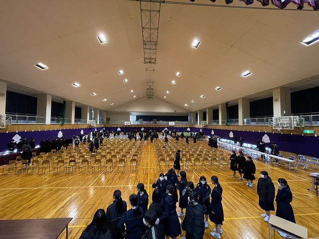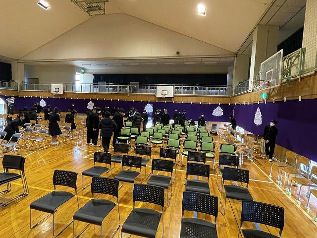 3/8(金)の午後は卒業式準備です。明日は予報によると、寒いになりそうですが、卒業生の心が温かくなるよう、1年生は清掃を中心に、2年生は会場準備を中心に頑張ってくれました。