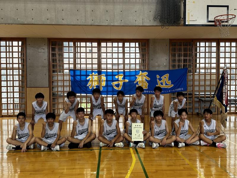 1回戦(準決勝)の津幡南中戦は89-16で勝利しました。決勝の津幡中戦は終盤に相手を突き放し、74-58で見事、優勝しました。加賀地区新人大会出場決定です。