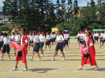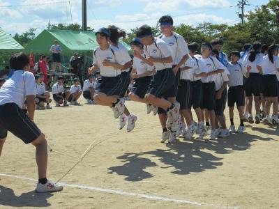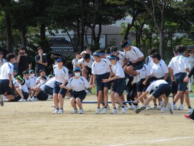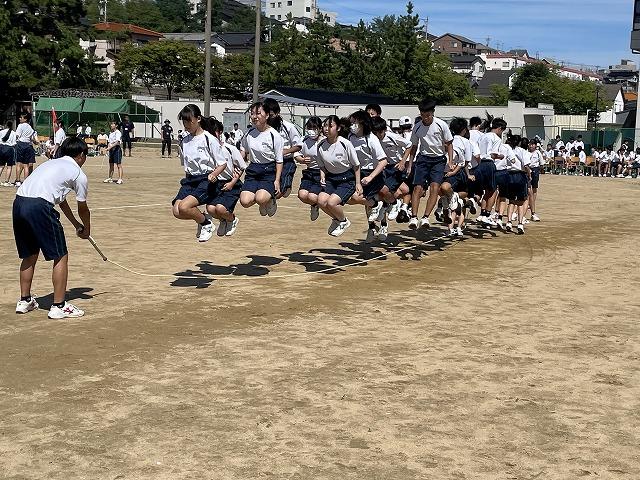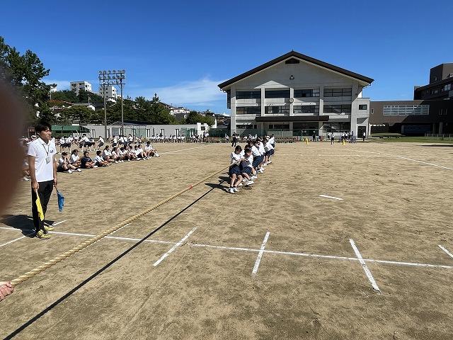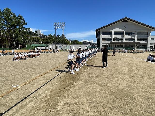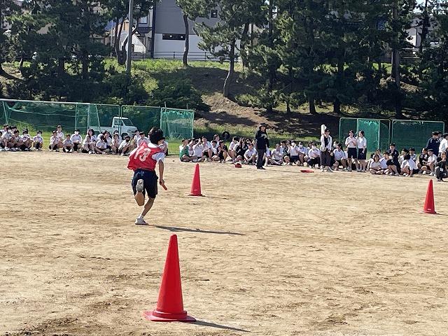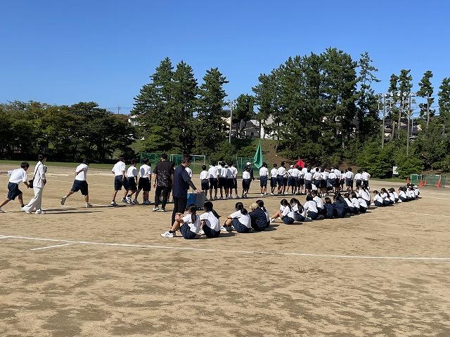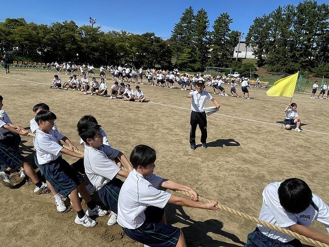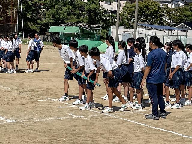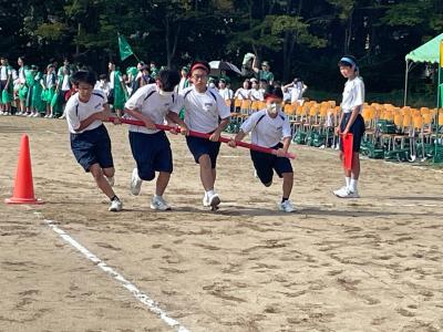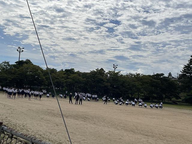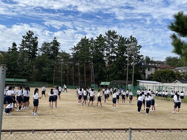 9/25(水)、体育祭の前日です。この日は各学年種目の練習を行いました。2・3年生は実際に競技を行い、生徒たちは歓声を上げながら取り組んでいました。