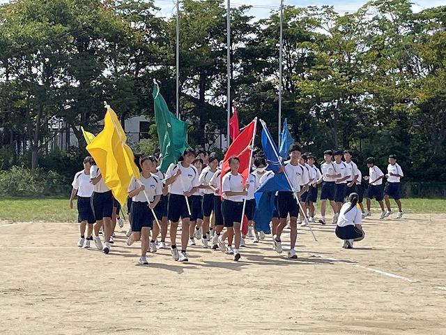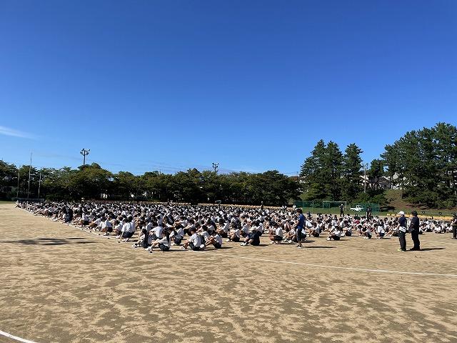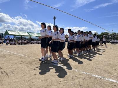 9/24(火)の午前中に体育祭の予行を行いました。予行に先立ち、生徒会長から「体育祭は生徒が主体となって行います。先生の力は借りません。生徒の力で行います。」という力強い挨拶がありました。この体育祭は全種目について、専門委員会や学年がゼロから考え直して実施します。生徒たちが主体的に活躍する姿に期待します。