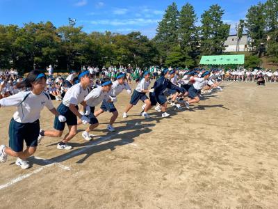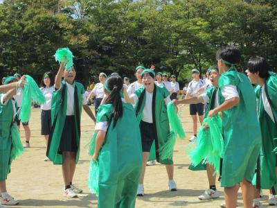 今年度の体育祭は全種目、生徒がゼロから考え、企画・運営した体育祭です。生徒が自らつくりあげ、全員が活躍する体育祭を目指しました。晴れ渡る秋空のもと、生徒たちの笑顔がいっぱいの一日になりました。団のために精一杯の頑張りを見せた生徒たち、種目の運営をしっかりと行ってくれた生徒たち、仲間の応援に声をからした生徒たち、仲間に励ましの声をかける生徒たち、素晴らしい姿をたくさん見ることができました。