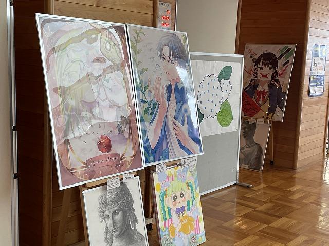 現在、内灘中学校の生徒ホールに、金沢学院大附属高校の生徒さんによる美術作品が展示されています。大きなキャンバスに描かれた素晴らしい作品ばかりです。
