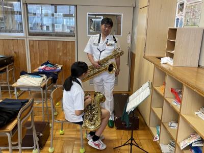 はじめに生徒たちの合奏を聴いていただき、その後、各パートに分かれてレッスンをしていただきました。音楽隊の皆さまによる熱心なご指導に応えようと、生徒たちも一生懸命に演奏しました。