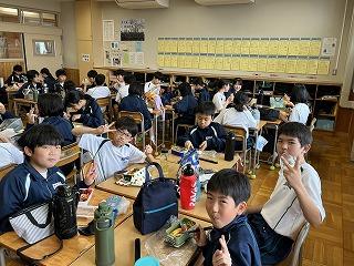 レクリエーション後は教室で班ごとになりお弁当を食べました。