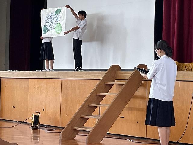 続いて生徒会から、専門員会からのお知らせの後、9月に行われる体育祭の団決めの抽選会を行いました。生徒会執行部の工夫により、とても盛り上がりました。