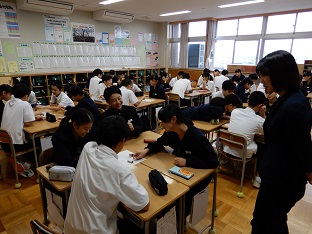 来週の合唱コンクールを控え、どの学級も練習に力が入っていました。放課後練習では、学級担任が見守る中、自主的に練習を進めています。