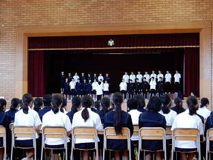 現時点でどの学級も未完成ですが、一生懸命歌いました。