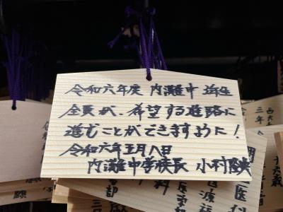 生徒たちが京都市内班別自主研修を行っている間、職員の一部が北野天満宮に行き、生徒たちの進路実現を祈念し、勧学のお札をいただき、絵馬を奉納してきました。お札は修学旅行後に各学級に飾らせていただきます。