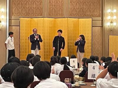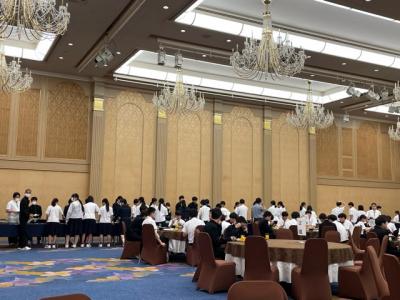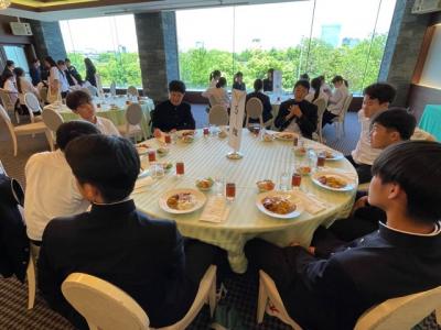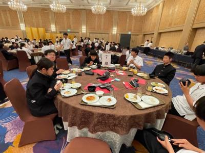 ホテル到着後は夕食です。ビュッフェスタイルのとっても美味しい食事に、生徒たちはうれしそうに食べていました。