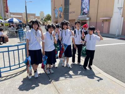 修学旅行3日目、USJでの活動が終了しました。生徒たちは時間を守り、全員が集合しました。予定通り、13:45にUSJを出発しました。