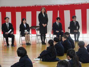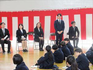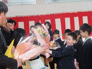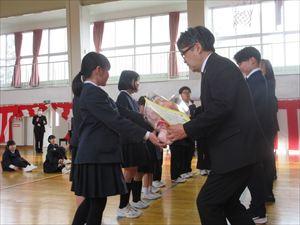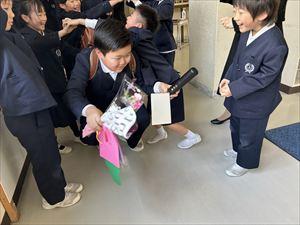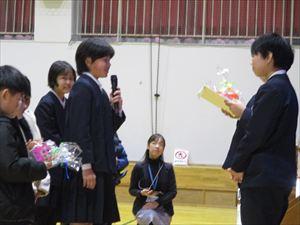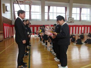 終業式の後には、グランドの仮設住宅にお住まいの皆さんが来校され、これまでの交流のお礼としてプレゼントをいただきました。私たちも日頃の交流を通して、たくさんの元気をいただいています。温かなお心遣いをありがとうございました。