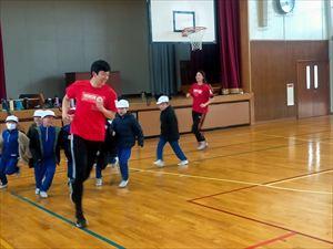 また、すこやか会「あいうえDO」の主催により、PTA会長さん扮するサンタさんやトナカイが登場し、ダンサーの皆さんからのキーホルダーのプレゼントなどが子どもたちに届けられました。会場は笑顔に包まれ、心温まるひとときとなりました。ご準備・ご協力いただいた皆さまに、心より感謝申し上げます。