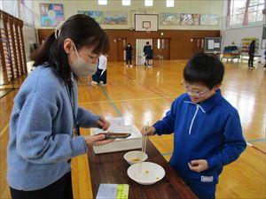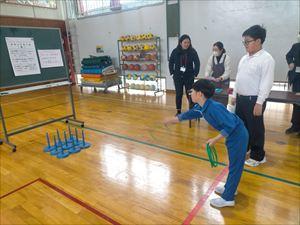 八の字跳びでは、班ごとに声を掛け合い、励まし合いながら挑戦する姿が見られました。さらに、最後の全校児童による八の字跳びでは、昨年の2倍近い149回を跳ぶことができ、これまでの練習の成果が感じられました。