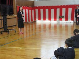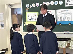 また、集会の最後には、冬休みに自分が頑張りたいことを発表しました。「1日3回歯磨きを頑張りたい」「計画的に勉強をしたい」など、規則正しい生活を意識した目標が多く聞かれました。クリスマスや年末年始など楽しみな行事も多い冬休みですが、きまりを守り、元気に過ごしてほしいと思います。
