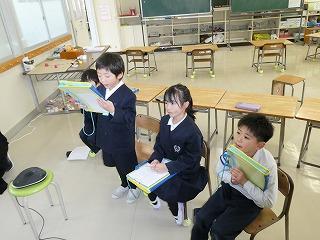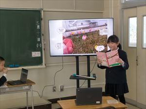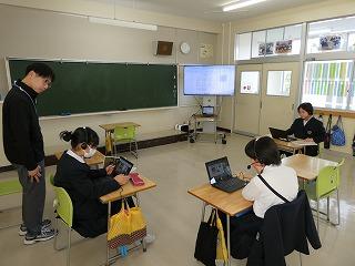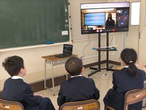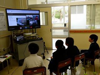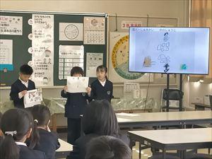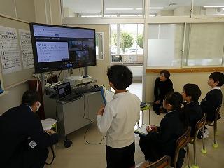 12月16日(火)、2年生が生活科「町探検」で分かったことを、宝立小中学校・飯田小学校・上田小学校の2年生とオンラインで発表し合い、交流しました。