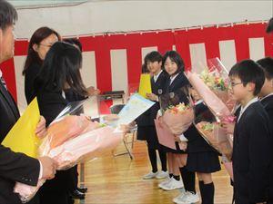 最後には、地域・保護者の皆さんから、これまでのスポーツ活動の頑張りをたたえて、子どもたち一人一人に金メダルを渡していただきました。日ごろから交流を通して子どもたちを励ましてくださっている地域・保護者の皆さん、ありがとうございました。