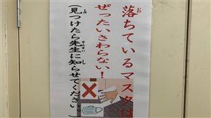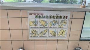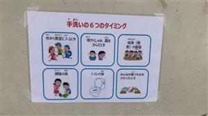 「手洗いマニュアル」、「手洗いのタイミング」、感染を避けるための「落ちているマスクを拾わない」「勝手にマスクをゴミ箱に入れない」等の案内を校内に適宜示しています。