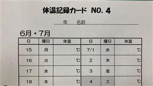 毎日、自宅で検温した結果を体温記録カードで報告します。何らかの事情で検温できなかった場合は、教室へは行かず、保健室で検温します。