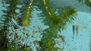 暖房のない廊下の水槽。そっと中をのぞくと、いました!「メダカ」です。とても冷たいはずの水の中ですが、なかなかに元気そうです。明日よりいよいよ3学期がスタート!子供達が戻ってきます。きっと、子供達の元気な声を、メダカ達も心待ちにしていることでしょう。