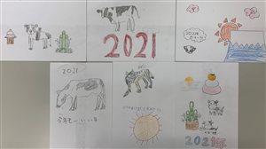 先月、フィリピン イフガオの子供達からクリスマスカードをいただきましたので、本校5・6年生で、お返しに年賀カードを作成しました。裏面に、今年の干支の「丑」に加え、「富士山」「門松」「鏡餅」「しめ縄」等の絵を描きました。きっと、イフガオの児童達は、それらの絵から、また新たに日本への関心を高め、合わせて、本校との交流を懐かしく思い出してくれることでしょう。