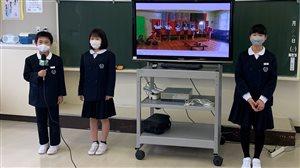 少し前に、1・2年生が学校のあちらこちらを取材?していました。校長室にもやってきました。本日、その訳がわかりました。1・2年生で「学校クイズ」をするためだったのです。取材の賜物で、色々な「学校に関するクイズ」が出されました。中には「ハンドベルについているシールの色は?」なんて難問?もありました。情報を収集し、それを活用する力を身に付けつつ、楽しく学校のことを理解できたようです。