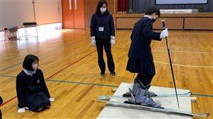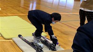 スキーをやったことのある方ならおわかりでしょうが、スキーは、まず、スキーを履くこと自体が大変です。慣れていないと、そこに時間がかかります。市内の他の小学校で、スキー合宿に行く前に、スキーを履く練習をしたと聞き、その学校に色々ご協力いただき、本校でも練習してみました(ご協力ありがとうございました)。結論、やって良かったです!まったく初めてという子は少なかったですが、かなり忘れている部分がありました。。今日の経験が当日役に立つことは間違いなさそうです。