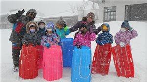 5・6年生のスキー体験学習2日目の日に、1~4年生は能登少年自然の家のお世話で、柳田植物公園へ「スキー・そり遠足」に行ってきました。天候が大変心配されましたが、時折晴れ間ものぞきましたし、フカフカの新雪の素晴らしさも思う存分味わえました。皆、とても楽しかったと言っていました。そして、活動後のカレーの美味しさは、また格別だったようです。能登少年自然の家の皆様方、子供達に貴重な体験をさせて下さり、本当にありがとうございました。