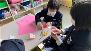 プレゼント等を渡す際によく目にするのが「リボン」です。リボンの結び方を知っておくと、役立つことがいっぱいあります。3・4年生が図工の学習の一環として、リボンの結び方を学びました。一本のテープが結び方一つで素敵なリボンに変身していく様は、子供達にとって、新鮮で嬉しい驚きだったようです。