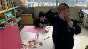 地域の方からたくさんの包装紙をいただきましたので、その一部を使い、3・4年生が「紙バッグづくり」に挑戦しました。とっても綺麗で使いやすそうなバッグが完成し、子供達が驚く位でした。このような学びを通して子供達のエコ感覚は磨かれていくことでしょう。