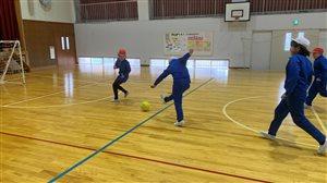 3・4年体育、室内サッカーゲームです。学習1時間目の今日は、先ず、ボールを足で自在にコントロールできるよう、幾つか練習を行いました。最初は、停まったボールの上に、両足裏を交互におく練習。力を入れすぎると、ボールはどこかに飛んでいってしまいます。簡単そうに見えてリズミカルに行うのは意外に難しいようでした。また、両足でボールを挟むように立ち、シューズ内側部分でけり、ボールを左右に動かしてみたり、ドリブルで進んでみたり。今日はなかなか言うことを聞いてくれないようでしたが、がんばって早く「ボールと友達」になってほしいと思います。