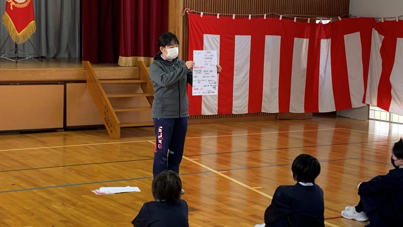 2月20日(土)、「6年生を送る会」「すこやか会修了式」が行われました。5年生が全体をしっかりリードし素敵な会にしてくれました。どの学級も、様々な工夫がなされ、発表を通して珠洲市の魅力や夢を追うことの素晴らしさ等たくさんのメッセージを6年生に伝えてくれたことと思います。6年生は流石の演技力で会場を唸らせました。今年度は保護者・学校職員合同で、「親子対決(6年生VS「父ちゃん」)」「思い出のスライドショー」等を行いました。6年生は、お父さん達の一生懸命な姿に、きっと色々なことを感じたことと思います。下級生からのプレゼントである色紙には6年生への感謝の気持ちがたくさん込められていました。全校児童による組曲もまた素晴らしかったです。何より24名が一つになっての一体感がありました。「すこやか会修了式」では、6年生一人一人がすこやか教室での思い出を発表してくれました。山本会長様より修了式を受け取るその姿は、地域で育まれた「すこやかな姿」そのものであったと思います。上戸小ならではの今日の日。6年生3名の心にしっかり刻まれたことでしょう。