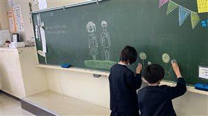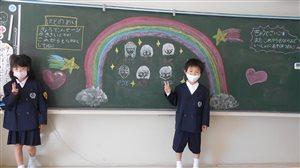 「1・2年生教室の黒板に、元気の出るメッセージをかこう!」。これは、5・6年生が自分たちで「学校のために何かやれないか」ということで、出されたアイデアです。4月13日からこのプロジェクトはスタートし、本日まで、実に9回も、5・6年生が、1・2年生のために、交代でかき続けてくれました。1・2年生は、毎日これをとても楽しみにし、とても喜んでくれたそうです。5・6年生の皆さん、素敵なメッセージを本当にありがとう!