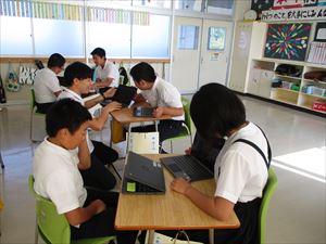 5・6年生はSNSに書き込まれた「不適切な表現」にどう対応するかについて、話し合いました。意見を活発にやりとりし、学習を深めていました。