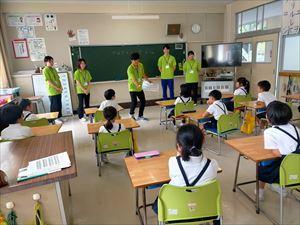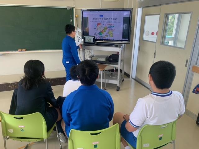 10月24日(火)3限目に市役所の危機管理室の鹿野さんをお招きし、災害や自助・共助・公助について教えていただきました。上戸町のハザードマップを見たり、クイズを考えたりしながら、楽しく防災について学ぶことができました。