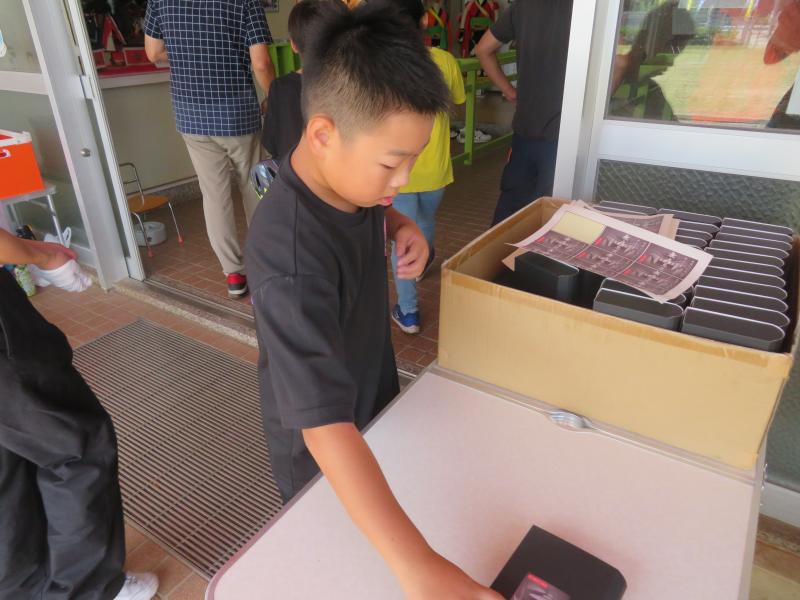 10月1日(日)に5・6年生が旧上戸保育所前でかきもちを販売しました。販売に伴い、事前にお知らせのポスターや、かきもちのパッケージシールを作成しました。その結果、多くの方々がかきもちを買いに来てくださいました。子供達は、「いらっしゃいませ~」「かきもちいかがですか~」「くせになる味ですよ~」「ありがとうございました~」等と生き生きと一生懸命に販売する様子が見られました。なんと用意していた160袋が完売でした。