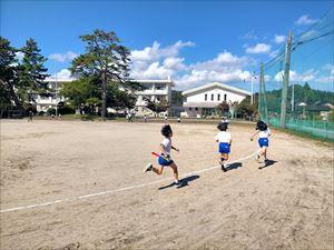 持久走大会に向けて、また体力向上のためにマラソンチャレンジの取組が始まっています。長休みは全員、昼休みは希望者がグランドを走ります。全戸児童全員、一生懸命走っています。今年は各班何周グランドを走ったかの合計で怪獣「ハシルン」を倒すことになっています。