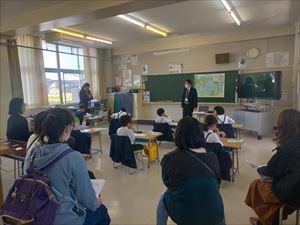 11月13日(月)に薬物乱用防止教室を行いました。石川県能登北部保健福祉センターの保健師の方にご来校いただきました。喫煙と飲酒について、体にどのような害があるのか、法律で禁止されていることなど、くわしく講義していただきました。飲酒や喫煙をすすめられた時にどう言ってことわるか、誘う役、断る役に分かれて実際にシュミレーションも行いました。