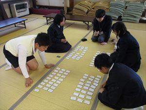 12月21日(木)の昼休みは、今年最後のゴールデンタイムがありました。全校で五色百人一首(ピンク)をしました。20枚で対戦するので、1回の試合時間が短くてすみます。20分の間に5、6回することができました。全員、集中して、百人一首を楽しんでいました。