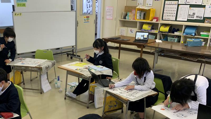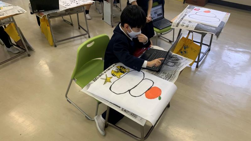 3学期、1・2年生は凧作りにチャレンジする予定です。今日は、凧に張る紙に絵を描きました。大きな紙にのびのびと描かれた絵には、子供達の楽しい思いが込められています。最近は凧あげをする子をめっきり見なくなりましたが、自分のつくった凧が空を舞う姿を見るのは、とても楽しいことだと思います。
