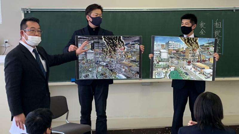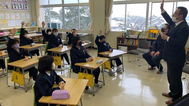 本日、本校で5・6年生を対象に租税教室が開かれました。クイズやビデオ、1億円のお札を持ってみる体験などもあり、楽しく、わかりやすく税について教えていただきました。最初は税について難しいイメージがあった子供達でしたが、最後には「自分達の生活が税金で成り立っていることがよくわかりました」等の感想が出され、税の仕組みがよく理解できたことが窺えました。素敵な記念品もいただきました。3名の講師の方々、本当にありがとうございました。