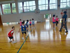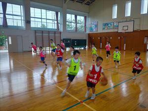 6月22日(木)の昼休みにゴールデンタイムがありました。今回は縦割り班の青班の企画でした。縦割り班対抗のバスケットボールでした。全員汗だくになってボールを追いかけていました。ミニバスケットボールの経験者が多いので、点数はどんどん入っていきました。1年生はちょっと難しかったかもしれません。でも、よくがんばっていました。
