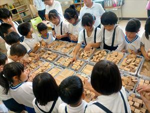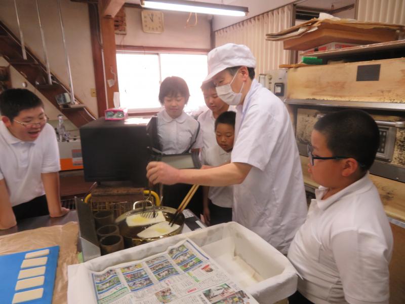 6月16日(金)に3・4年生が泉秀芳堂さんに社会見学に行きました。お菓子(和菓子)の作られる工程を見学するだけでなく、実際にお菓子作りや箱詰めの体験もさせていただきました。出来立てのお菓子も食べることができたそうです。3・4年生は「とっても、おいしかった。」と笑顔で報告してくれました。泉秀芳堂さん、ありがとうございました。