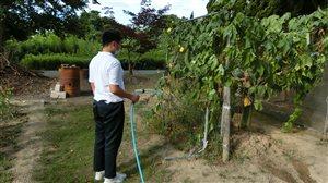 5年理科、「花から実へ(花のつくり、お花・め花、受粉)」。これまでにも何度か紹介してきた「ヘチマ」。4年生がこれまで育ててきましたが、あまりに残暑が厳しく、花のつくりや受粉などの学習ができないのではないかと心配でした。しかし、児童達が水やり当番を一生懸命行ってきてくれたことで、「ヘチマ」は今も生き生きとし、5年生が「お花・め花の観察」や、「受粉の実験」を行えています。暑い中でも元気なヘチマの姿はどこか誇らしげです。