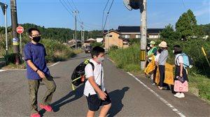 秋の全校交通安全運動週間に合わせて、本校も子供達と一緒に街頭指導を行っております。朝からいい笑顔で迎えられるのはとても気分がいいものですね。市役所の方とも一緒に行いました。ふと、川をのぞくとカルガモ一家がいました。こちらも朝の挨拶をしているのでしょうか。